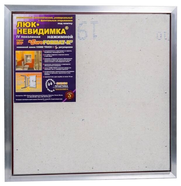 Ревизионный люк Евроформат ЕТР 60-60 настенный под плитку ПРАКТИКА серебристый 60 см 60 см 5.5 см