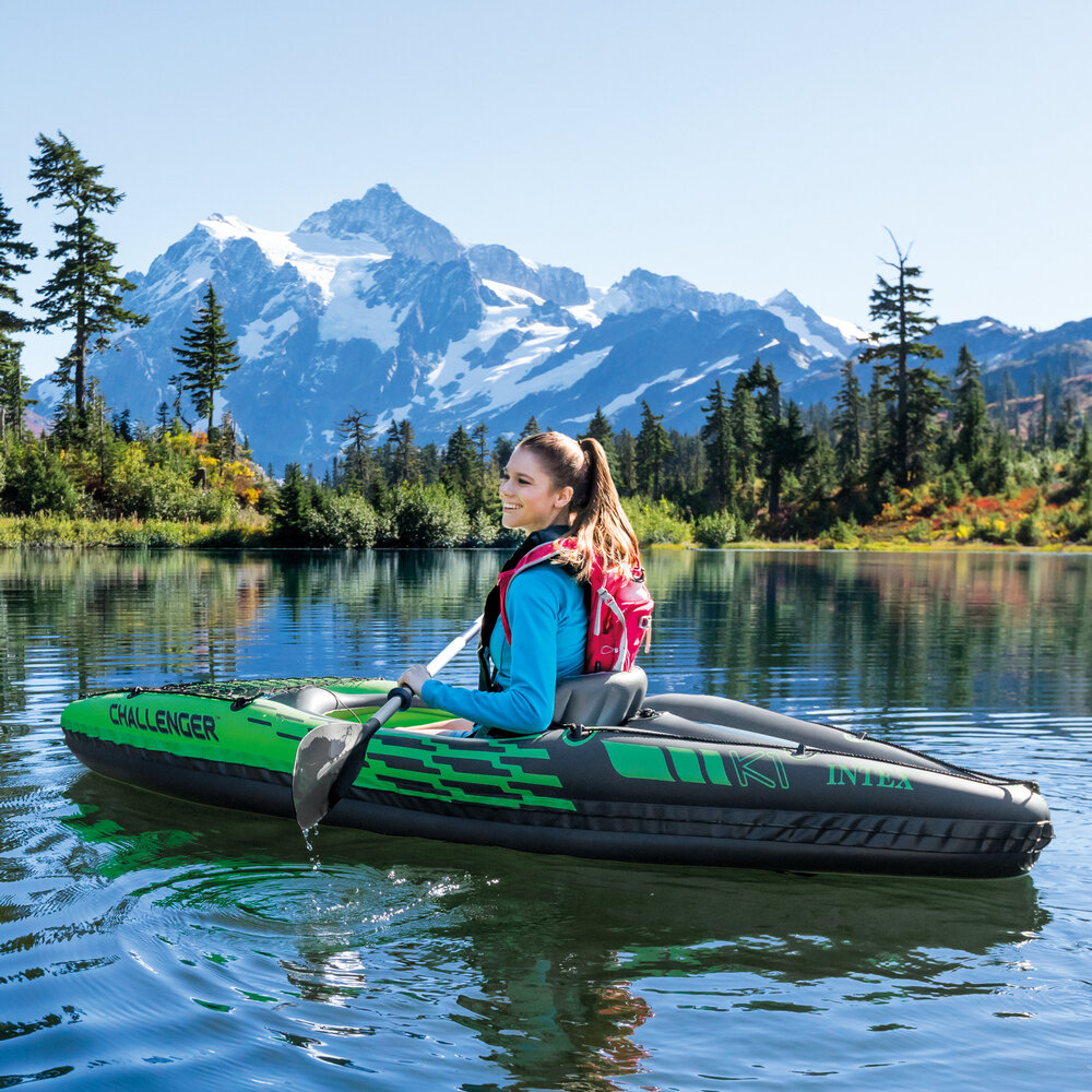 10 цен на Лодка надувная INTEX CHALLENGER K1 KAYAK, 1 мест. + ручной насос, алюминиевые весла, сетка для аксессуаров