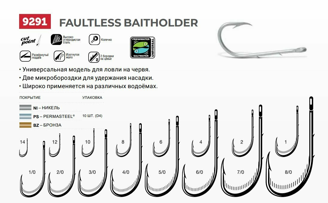 VMC, Крючки 9291 NI, 10шт,, №4, арт,9291NI-04-D