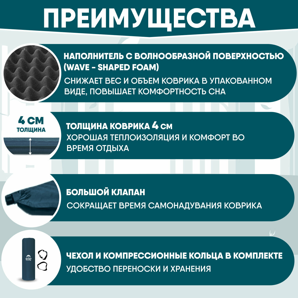 Коврик самонадувающийся кемпинговый JUNGLE CAMP Camper 40 информация: