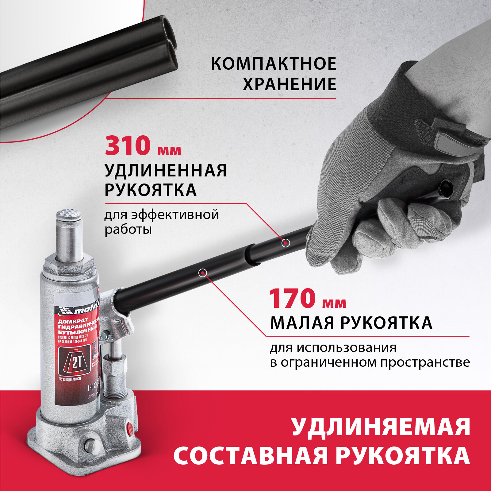 Домкрат гидравлический бутылочный MATRIX 50750, 2 т, h подъема 181–345 мм