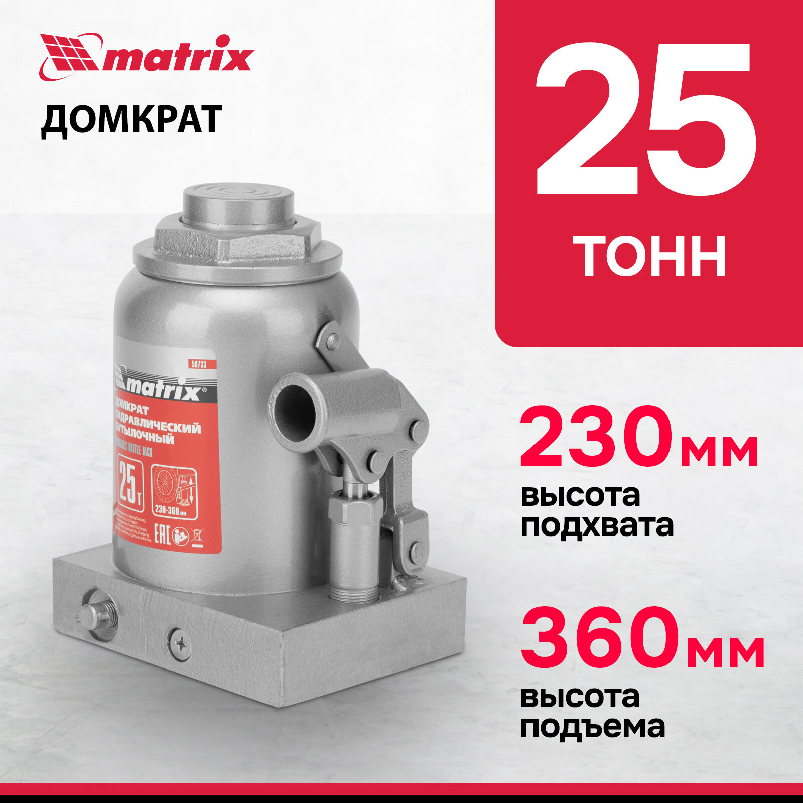 10 цен на Домкрат гидравлический бутылочный, 25 т, высота подъема 230-360 мм Matrix Master MATRIX