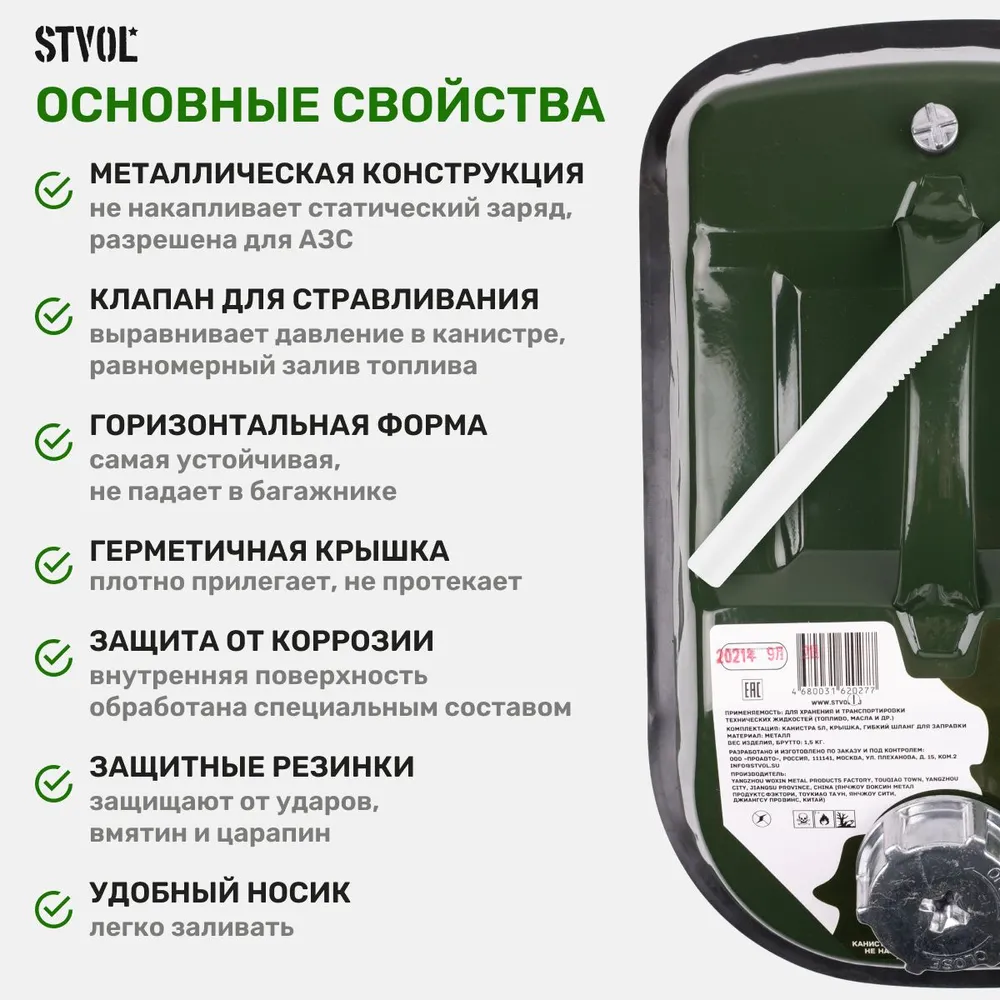 STVOL SKM5G Канистра металлическая 5 л горизонтальная Stvol информация: