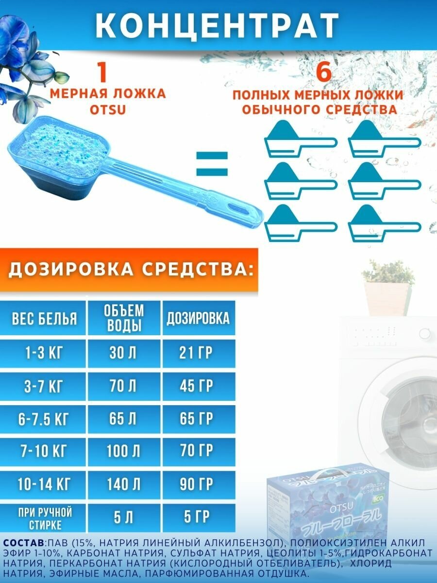 Otsu концентрированный стиральный порошок с ароматом цветочного сада, 118 стирок, 2,5 кг