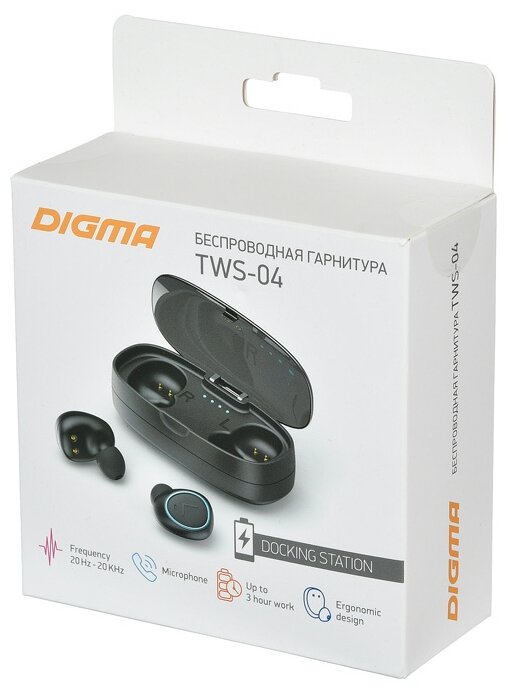 Гарнитура вкладыши Digma TWS-04 черный беспроводные bluetooth информация: