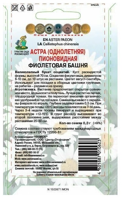 Семена цветов Поиск астра пионовидная Фиолетовая башня информация: