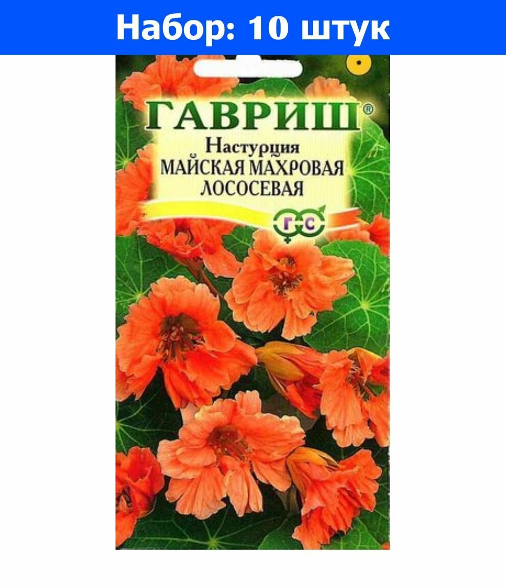 10 цен на Семена Настурция майская махровая лососевая, 1,0г, Гавриш, Цветочная коллекция, 10 пакетиков