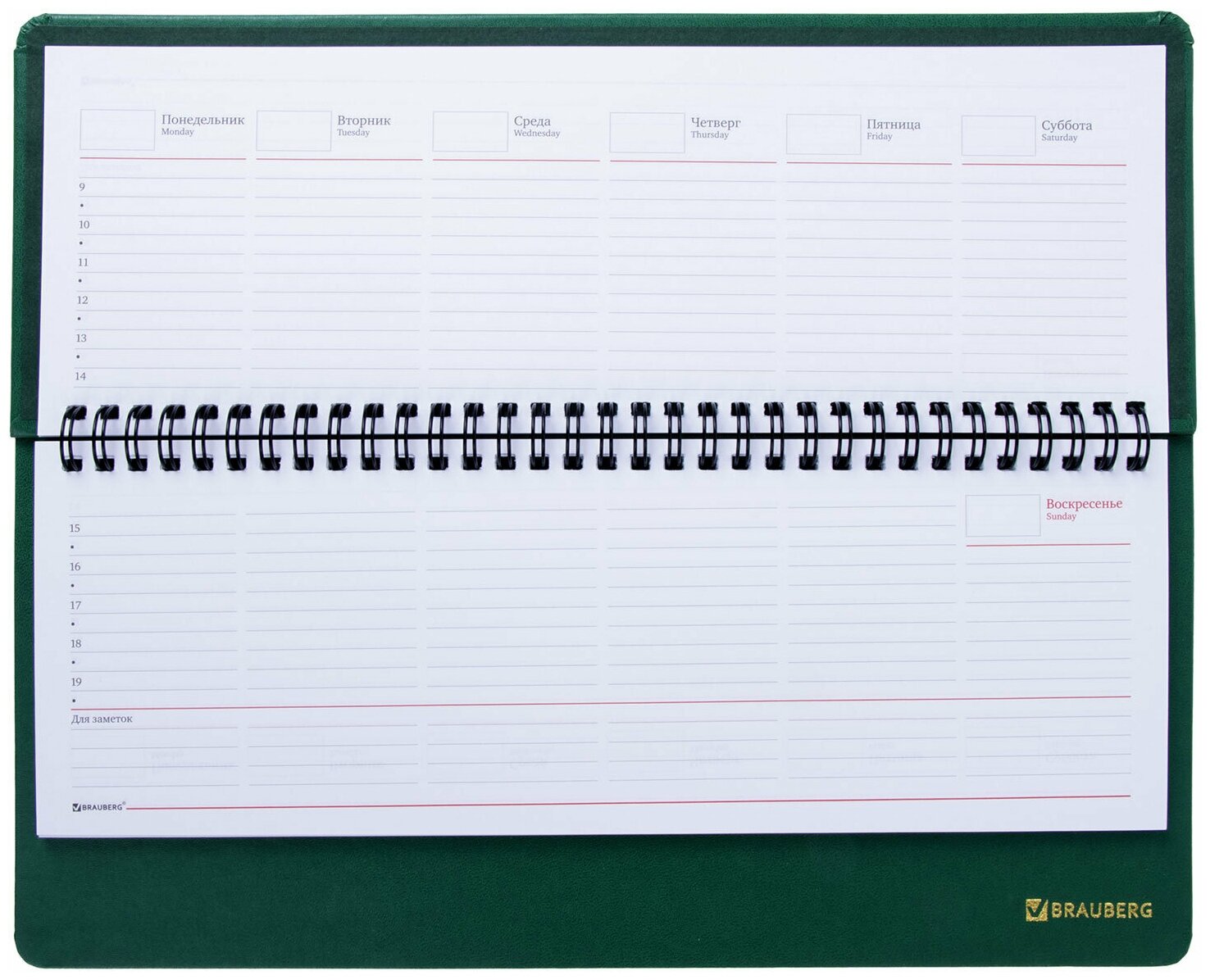 Планинг (ежедневник-планер), записная книжка, блокнот недатированный настольный горизонтальный (305x140 мм) Brauberg балакрон, 60 л., зеленый, 111695