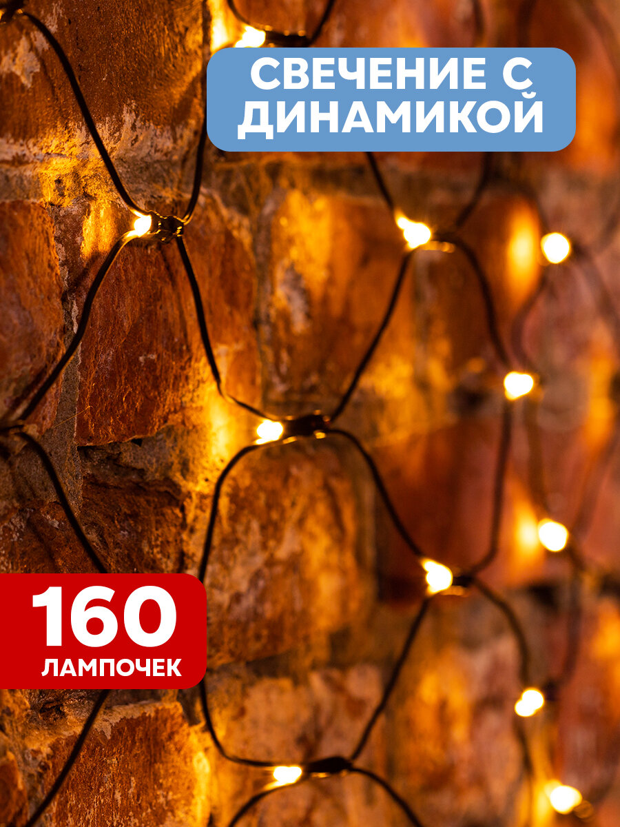 Светодиодная гирлянда NEON-NIGHT "Сеть" 1х1.5 м, 8 режимов, 160 тепло-белых светодиодов, черный провод 2 480 ₽
