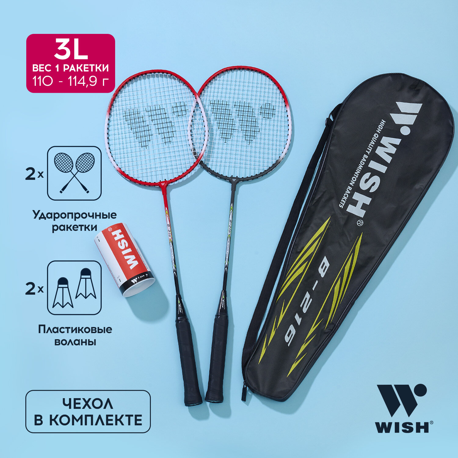 Набор ракеток для бадминтона 2шт (чехол, волан) WISH Steeltec 216