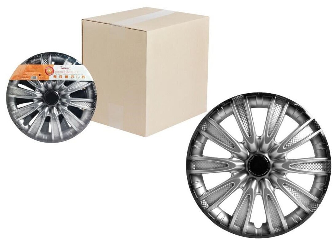 Колпаки колесные 15 Торнадо +, серебристо-черный, карбон, компл. 2 шт.