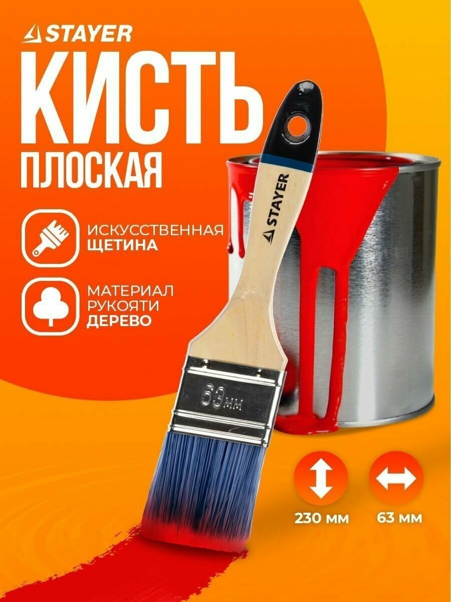 STAYER AQUA 63 мм, 2,5″ искусственная щетина, деревянная ручка для воднодисперсионных и акриловых ЛКМ, Плоская кисть, EURO (01062-063)