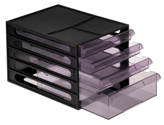 Бокс с выдвижными лотками закрытый Стамм 4 лотка черный/прозрачный формат A4, 930931 2 714 ₽
