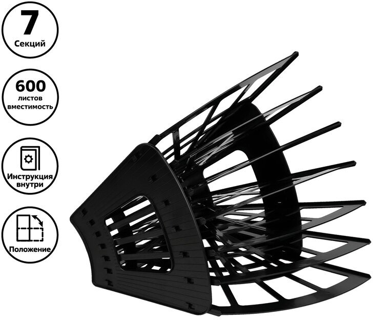 Комплект 7 шт, Лоток для бумаг веерный СТАММ "Эконом", 7-ми секционный, черный информация: