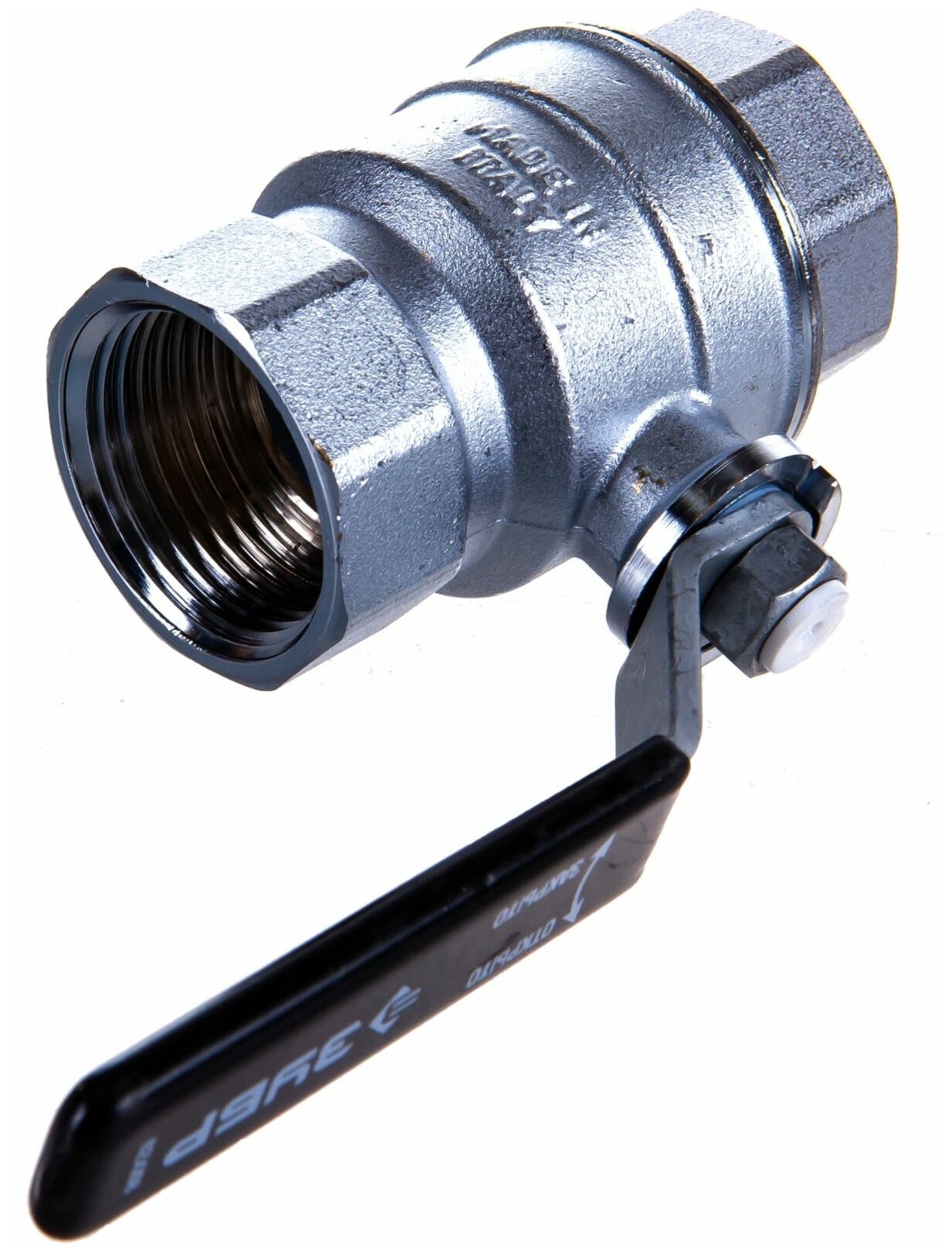 Кран шаровой ЗУБР полнопроходной мама-мама , ручка, хромиров латунь, 1 1/2