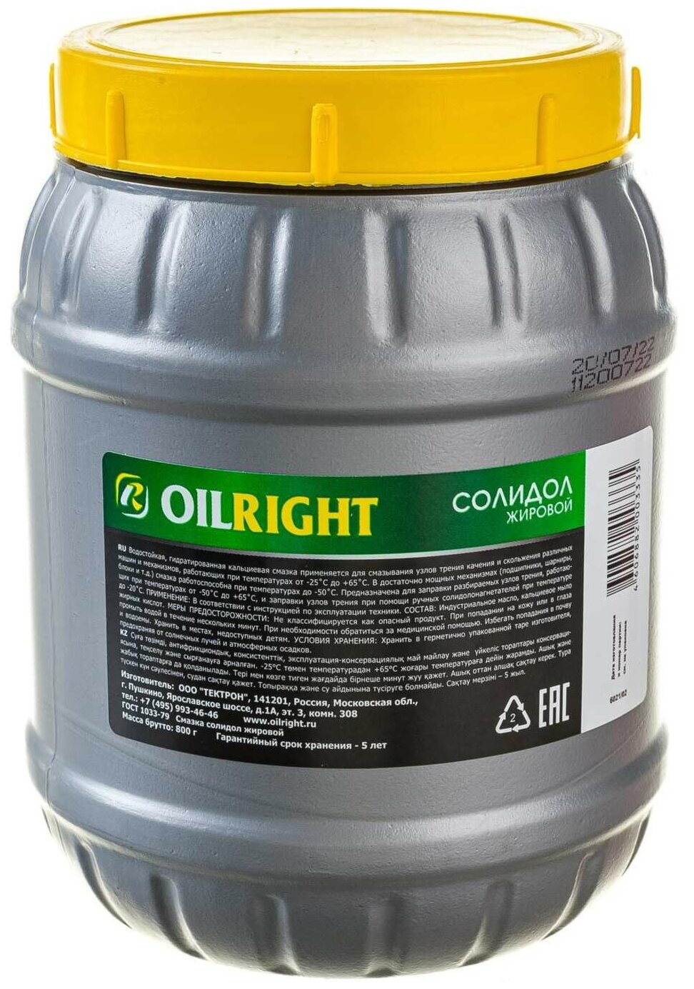 Смазка солидол OILRIGHT жировой 800 гр 6021 информация: