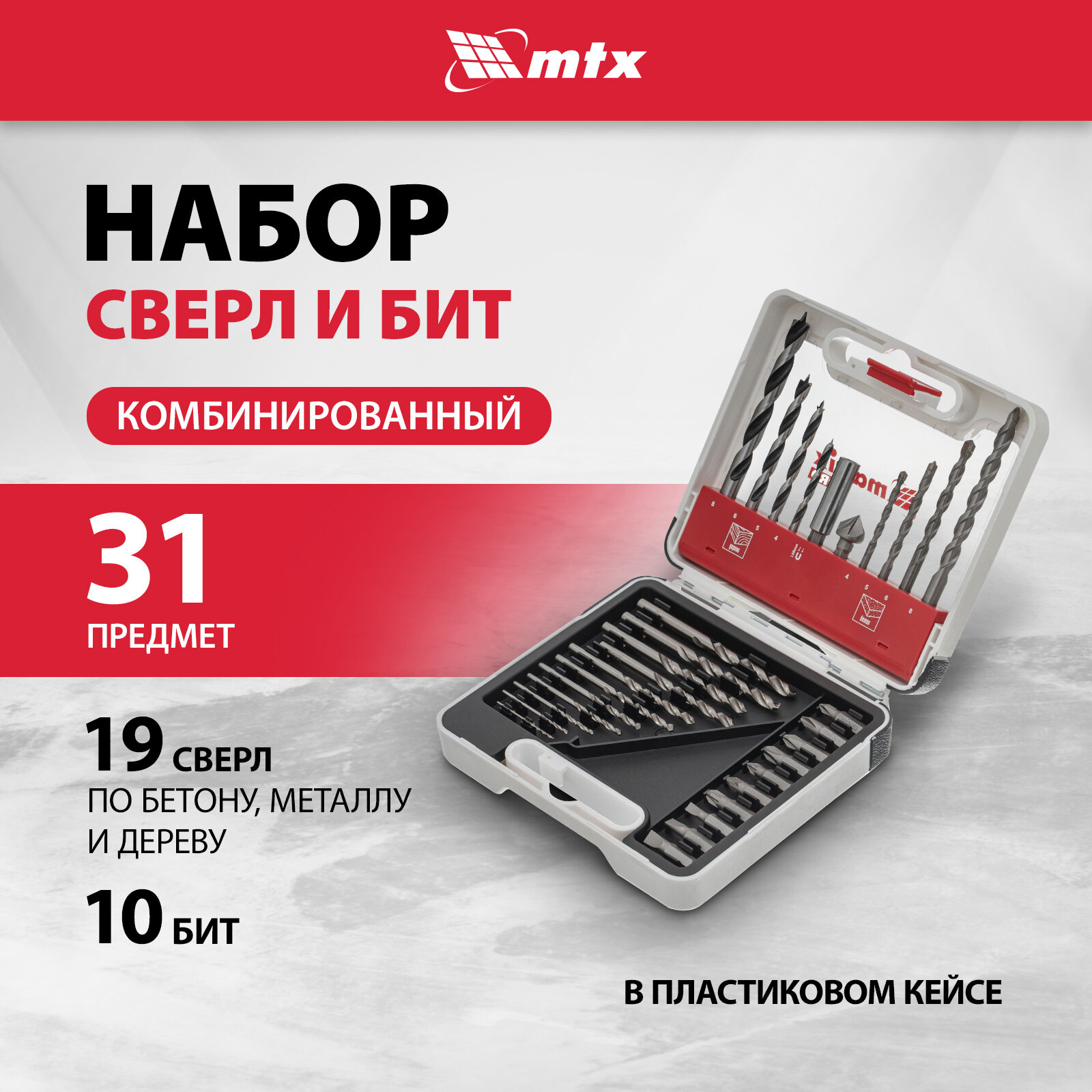 Набор сверл и бит MATRIX PRO 725631, 31 предмет, сверла по металлу-бетону-дереву, биты