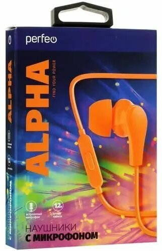 Perfeo наушники внутриканальные c микрофоном «ALPHA» оранжевые (PF_A4936)