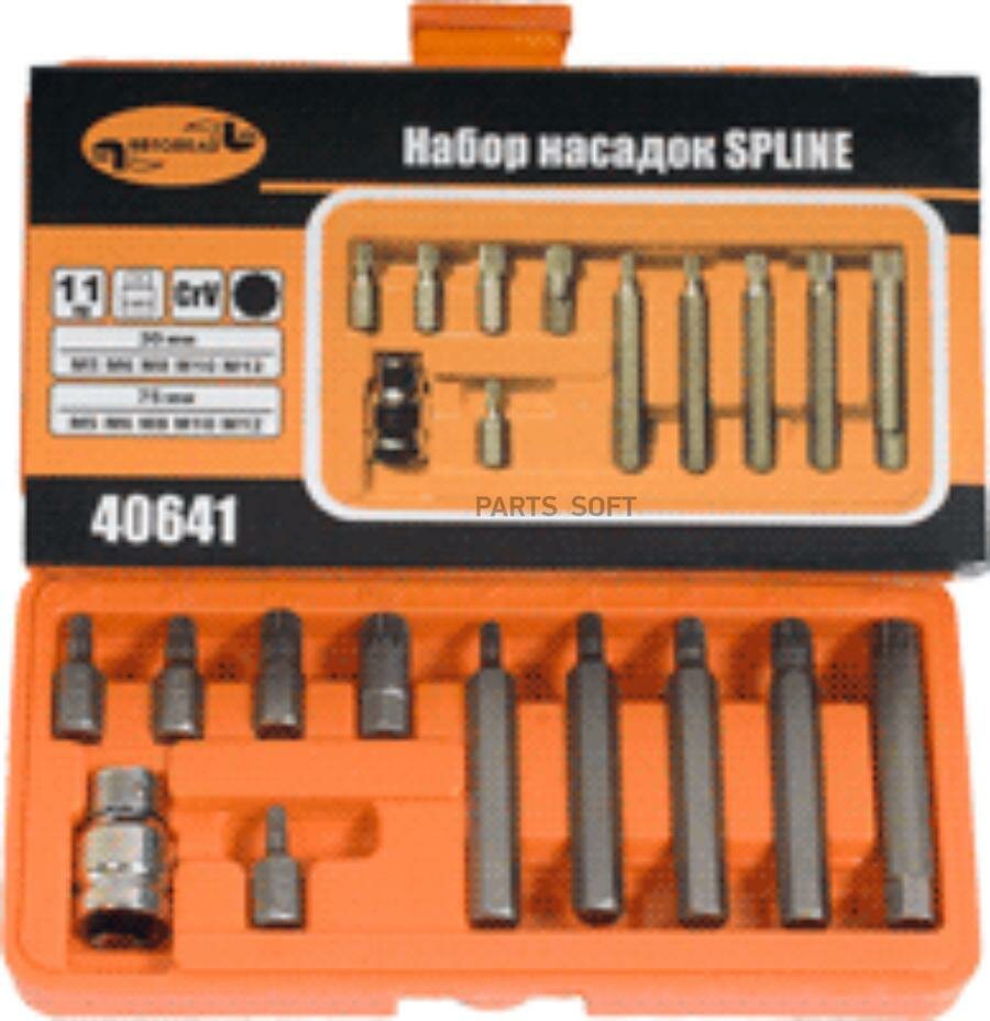 Набор бит (вставок) 11 пр. SPLINE М5-М12 автодело 40641