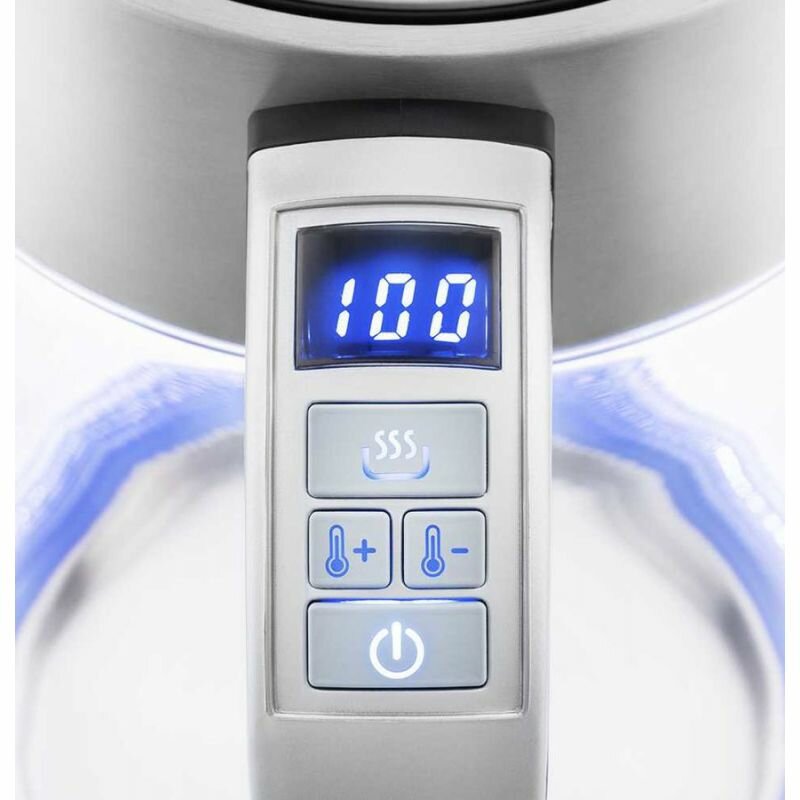 Чайник KITFORT КТ-690, 1,7 л, 2200 Вт, закрытый нагревательный элемент, LED дисплей, терморегулятор, стекло, серебро