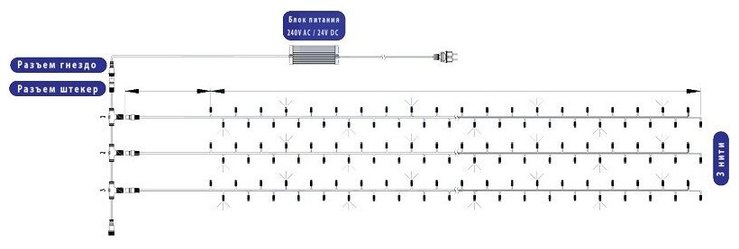 Neon-Night Гирлянда "LED ClipLight" 24V, 3 нити по 10 метров, синий NEON-NIGHT