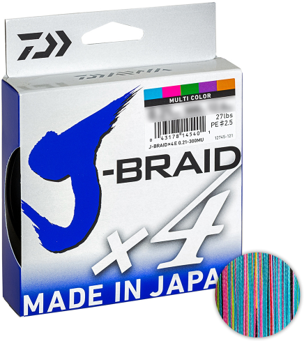 Шнур плетёный Daiwa J-Braid X4E 300м. 0.12мм. Multicolor 4.9kg