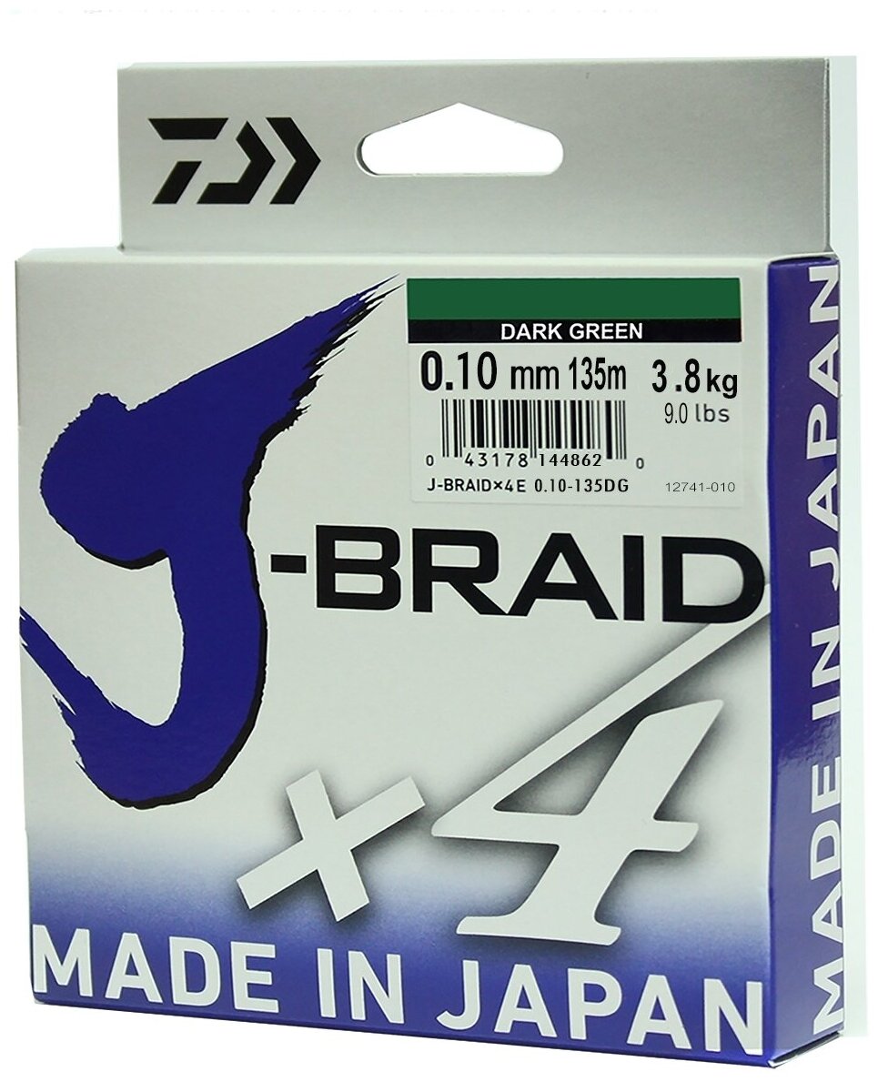 10 цен на Шнур плетеный для рыбалки PE Daiwa J-BRAID X4 (0.10 мм, 3.8 кг, 135 м) цв. Тёмно-Зелёный