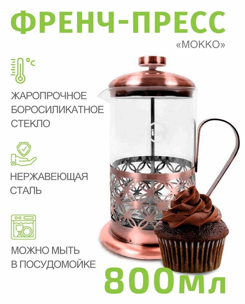 Френч-пресс мокко 600мл. нержавеющая сталь, боросиликатное стекло, медь, 1442496 2 057 ₽