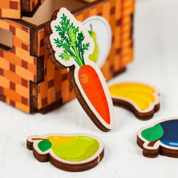 Волшебный комодик "Фруктовая лавка", развивающая логическая игра, умный сундучок, деревянный сортер, методика Монтессори