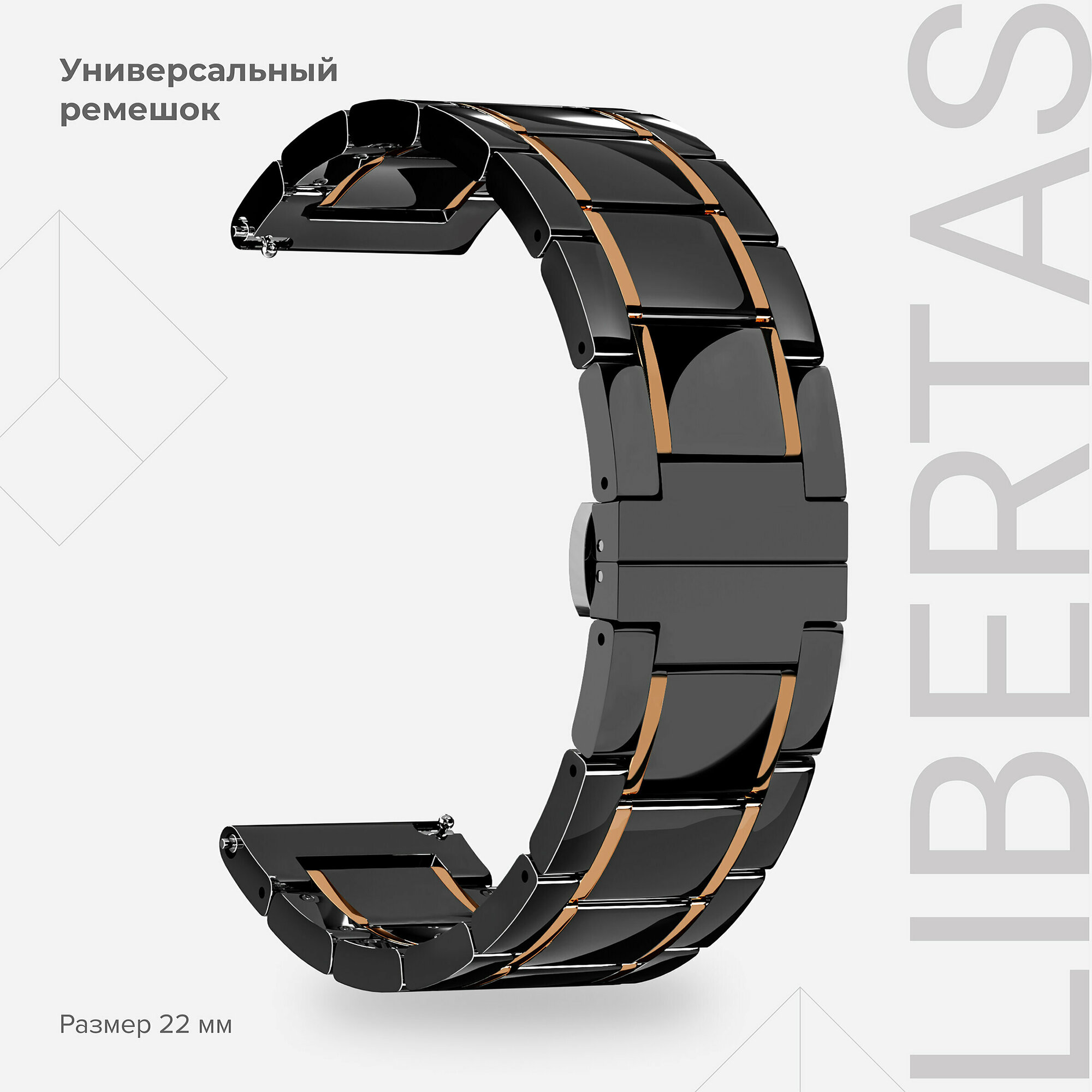 10 цен на Универсальный керамический ремешок для часов 22 mm LYAMBDA LIBERTAS DSG-09-22-BG Black/Rose Gold
