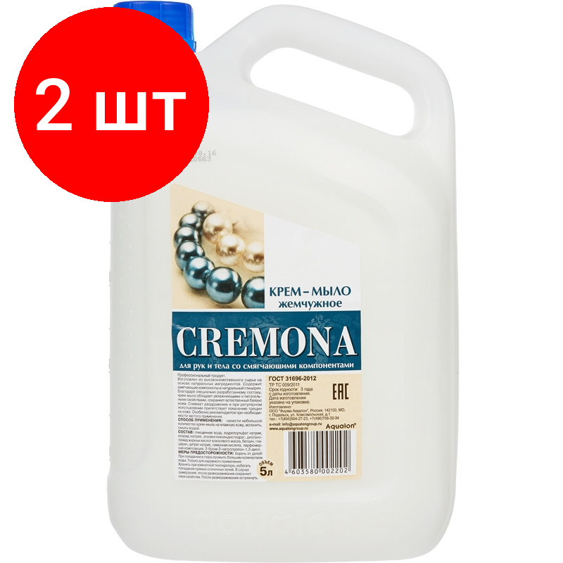 Комплект 2 штук, Мыло жидкое Крем-мыло кремона 5л жемчужное информация: