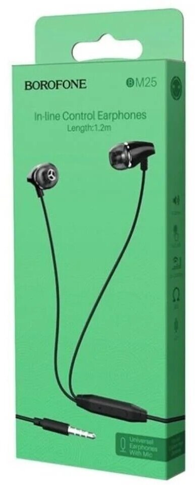 Гарнитура BOROFONE BM25 Sound Edge 3.5 мм, вставная, 1.2м (черный), шт BM25