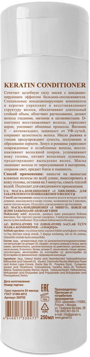 10 цен на KERATIN CONDITIONER - маска-кондиционер "3 минуты" для окр.и поврежд.волос 250 мл.