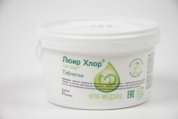 Хлорные таблетки для дезинфекции люир хлор, таблетки 300 шт., 1 кг. 815 ₽