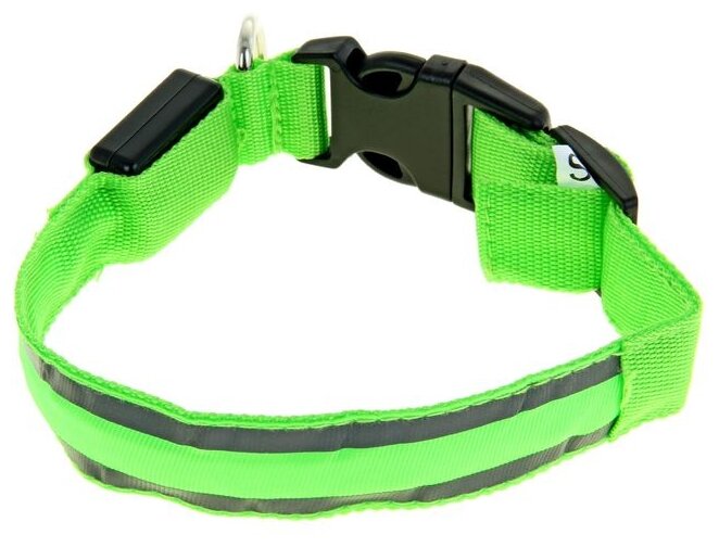 Для ежедневного использования ошейник Пижон с подсветкой 2 светоотражающими полосами , зеленый, S