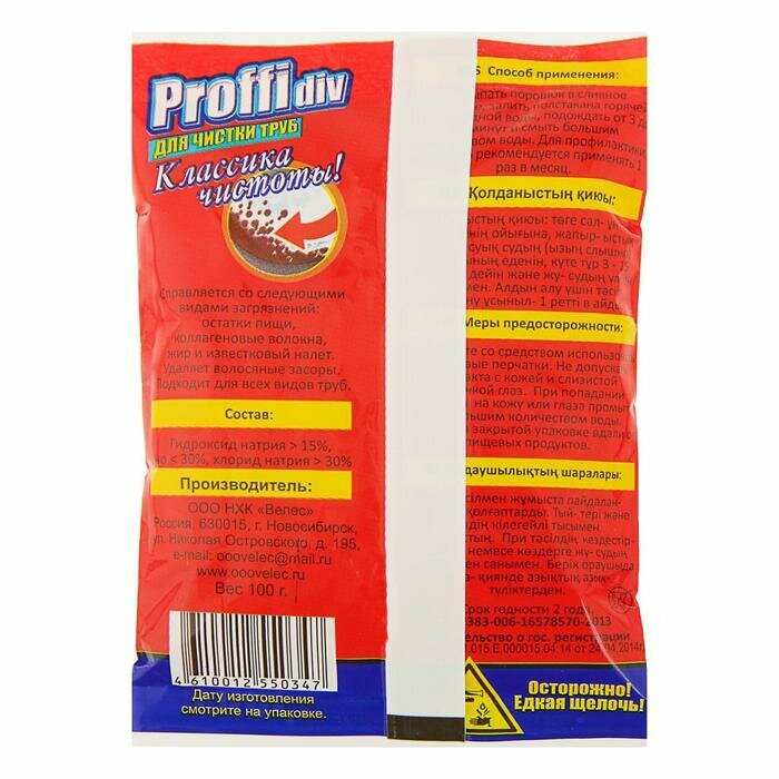 Средство для удаления засоров Proffidiv гранулы 100г 839476 информация: