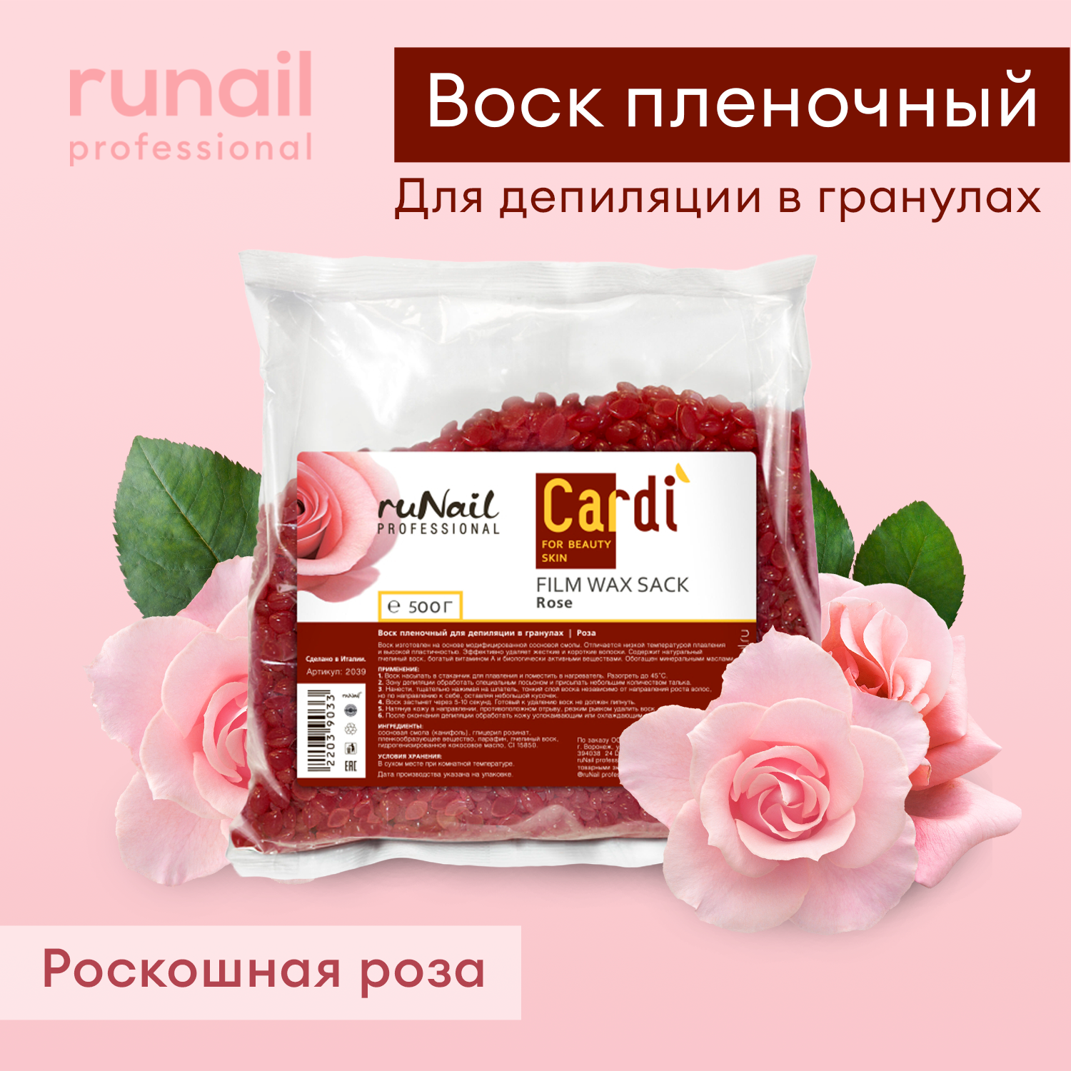 RUNAIL, CARDI, Воск пленочный для депиляции в гранулах, Роскошная роза, 500 г