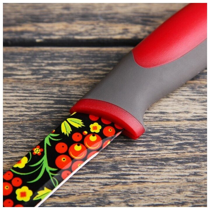 Нож кухонный с антиналипающим покрытием Доляна «Русский узор», лезвие 12 см информация: