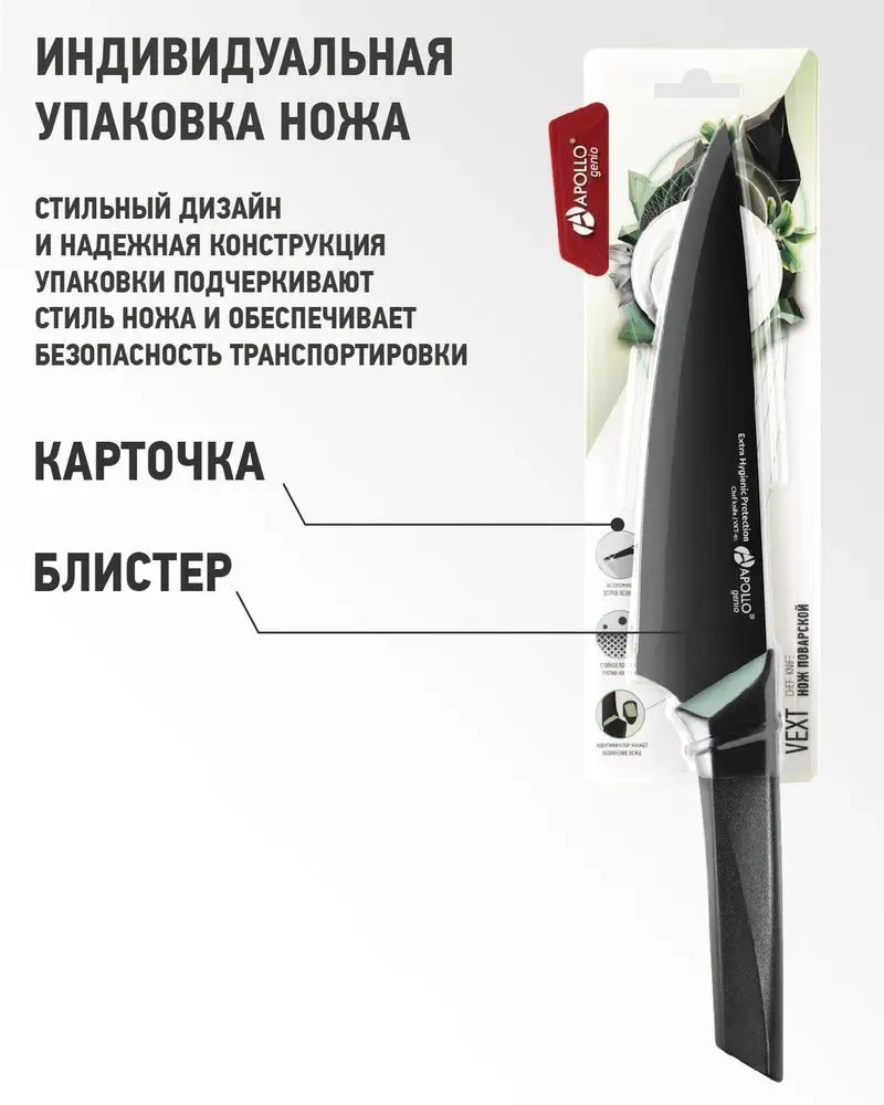 Нож поварской с антипригарным покрытием APOLO "VEXT" 17.5 см информация: