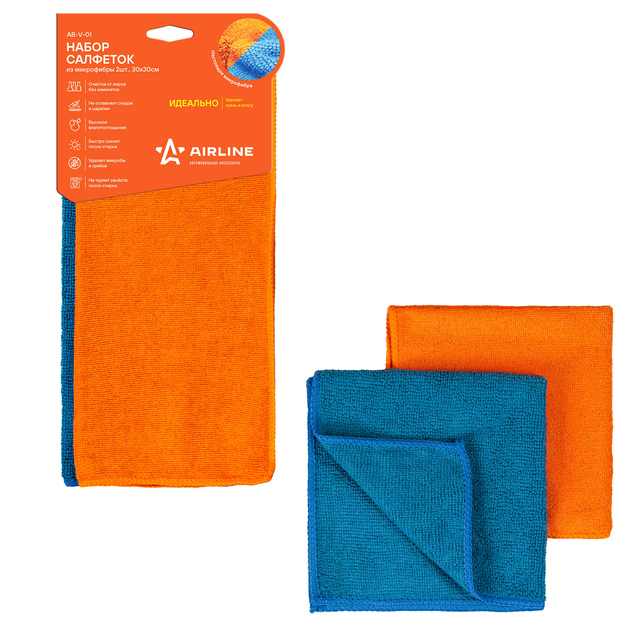 Набор Салфеток Из Микрофибры, Синяя И Оранжевая (2 Шт., 30*30 См) (Ab-V-01) AIRLINE арт. ABV01