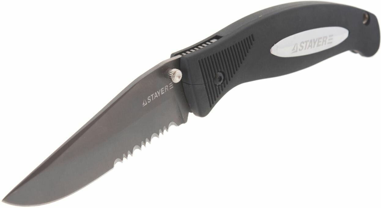 Нож STAYER ″PROFI″ складной,серрейторная заточка, эргономичная пластиковая рукоятка, лезвие 80мм