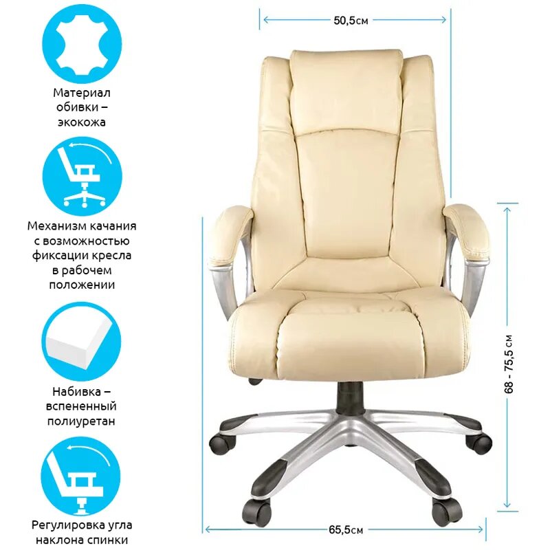 Кресло руководителя Helmi "Capital", экокожа бежевая (274838) информация:
