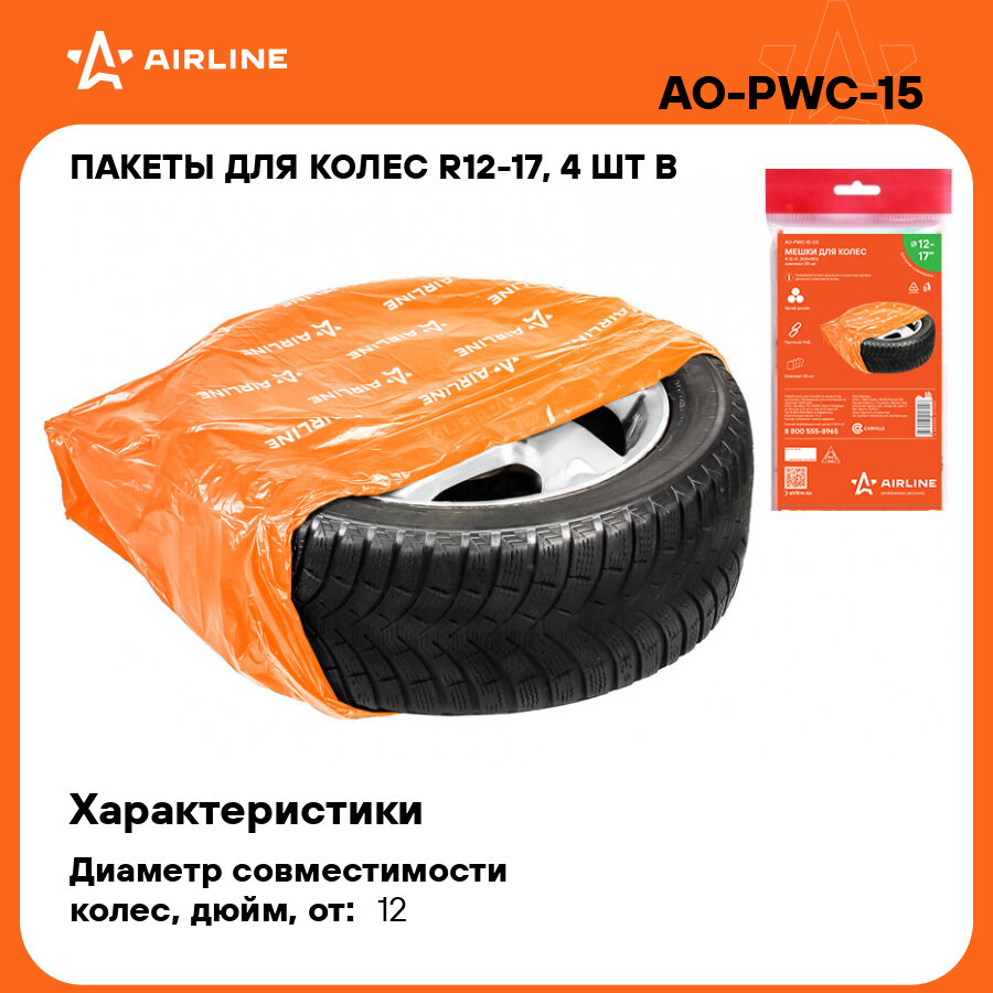 Мешки для колес R12-17, комплект 4 шт, размер 100х100 см (AO-PWC-15) AIRLINE арт. AOPWC15 информация: