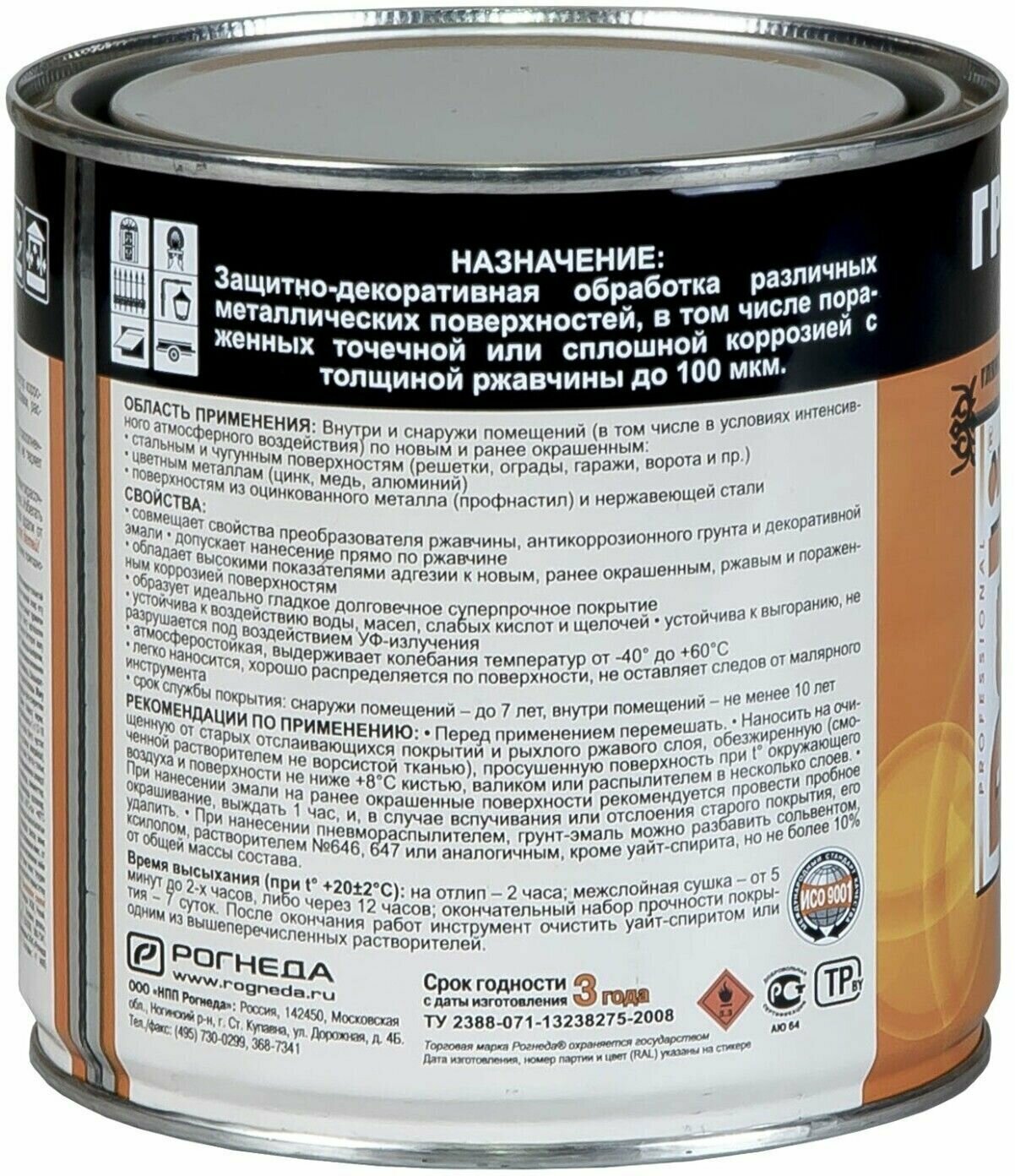 Грунт-эмаль по ржавчине Dali 3 в 1, глянцевая, 2 л, черная