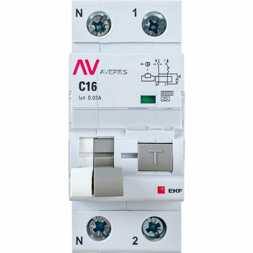 Выключатель автоматический дифференциального тока 2п C 16А 30мА тип A 6кА DVA-6 Averes | код. rcbo6-1pn-16C-30-a-av | EKF ( 1шт. )
