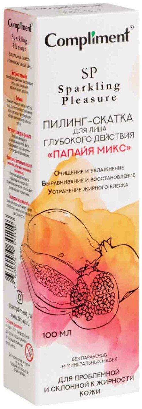 Пилинг-скатка для лица COMPLIMENT "Sparkling Pleasure", Папайя микс, Глубокого действия, 100 мл информация: