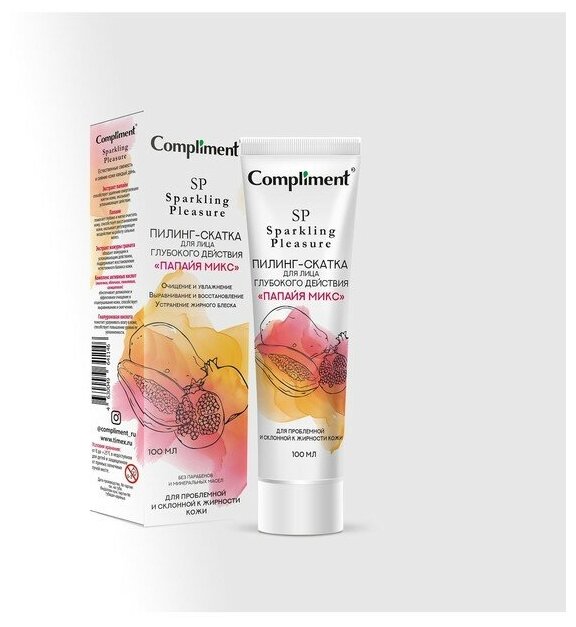 Compliment Sparkling Pleasure пилинг-скатка для лица глубокого действия Папайя микс, 100 мл 1 шт 194 ₽