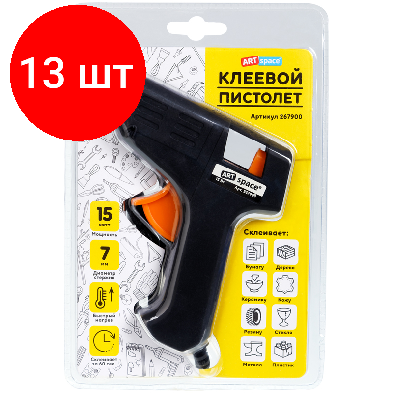 Комплект 13 шт, Клеевой пистолет ArtSpace, 15Вт для стержня 7мм, блистер информация: