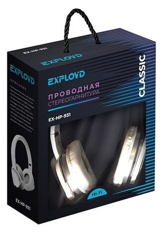 Наушники EXPLOYD EX-HP-931, mini jack 3.5 mm, белый/серебристый информация: