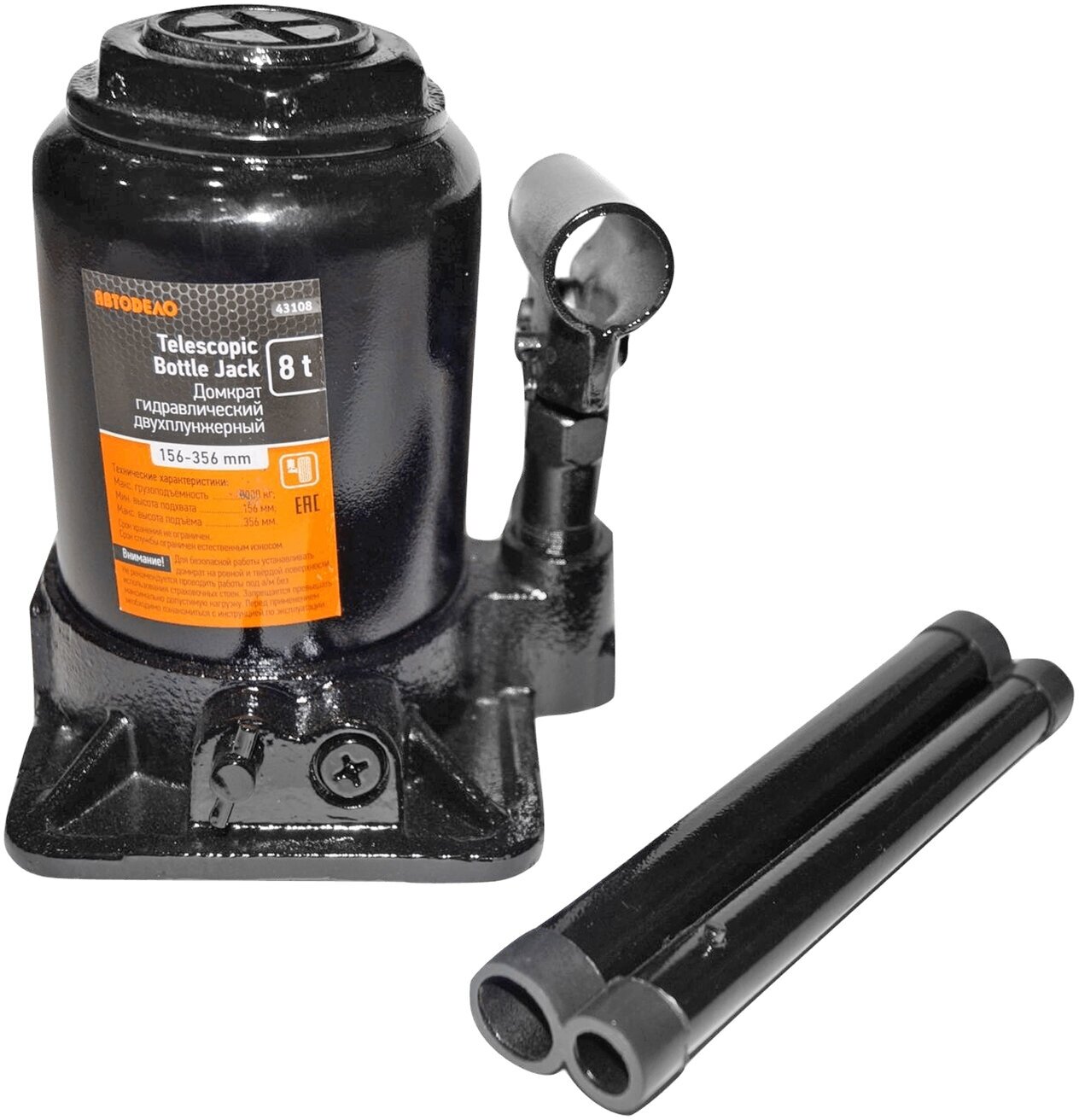 Домкрат бутылочный гидравлический АвтоDело 43108 (8 т), 156-356 мм. информация:
